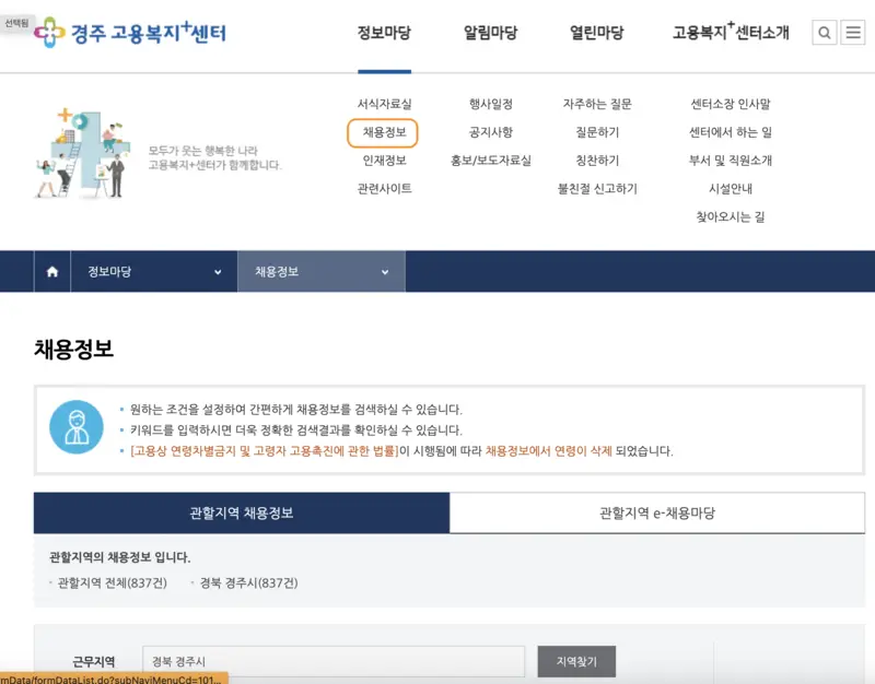 아래 링크를 통해서 경주 공공일자리 채용공고 게시판으로 빠르게 이동하실 수 있어요.