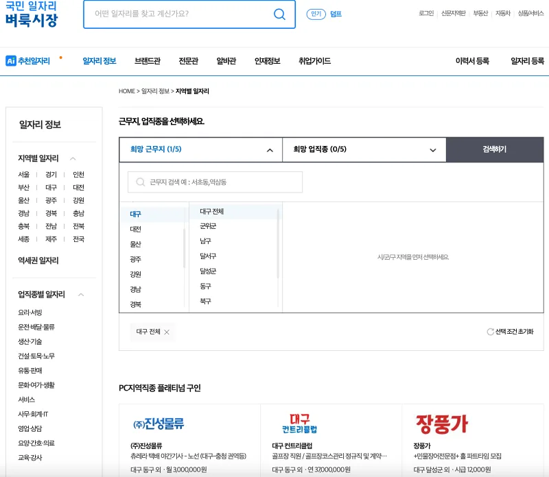 대구지역 일자리가 정말 많습니다.