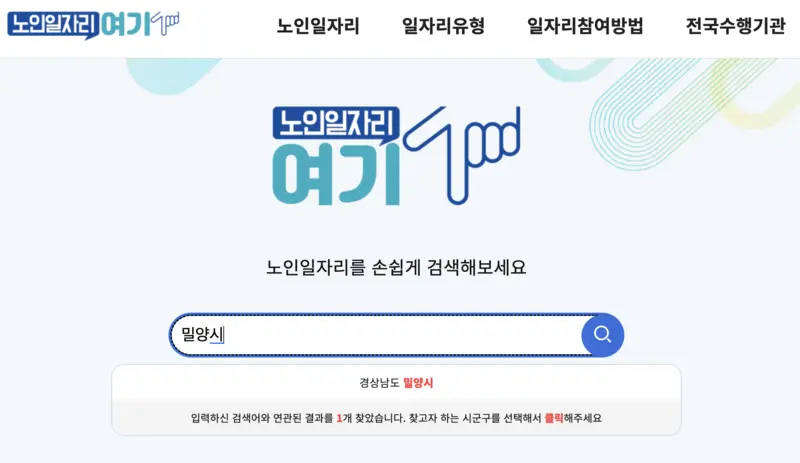 밀양시 노인일자리 정보는 노인일자리여기 사이트를 통해서 확인해보겠습니다.